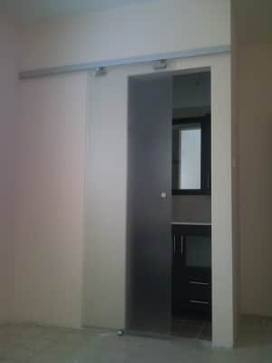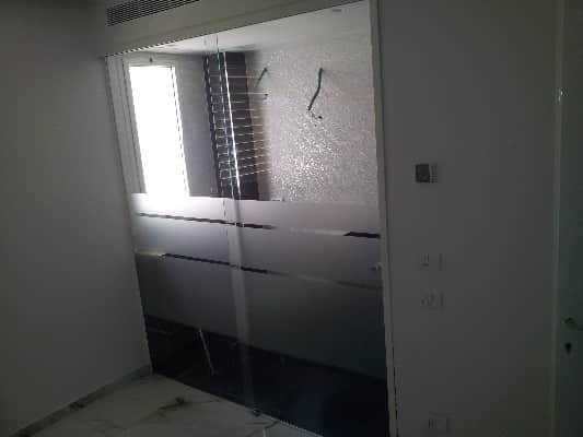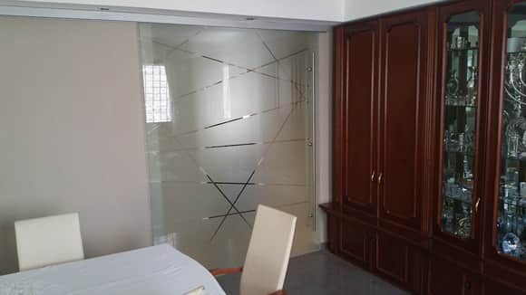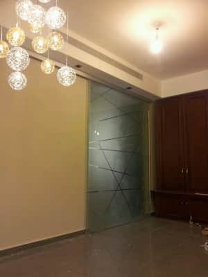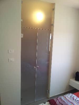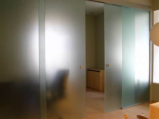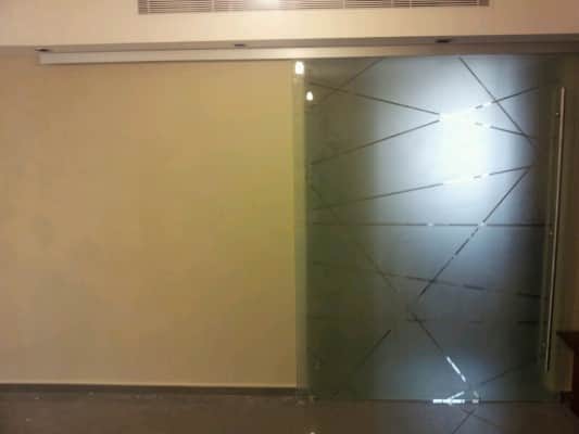 דלת הזזה מזכוכית אסיד על מסילה מוסתרת