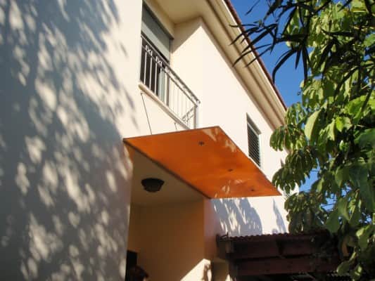 גגון זכוכית כתומה עם מוטתות נירוסטה