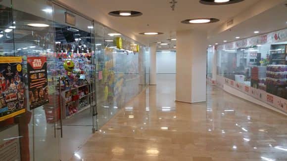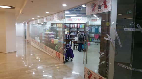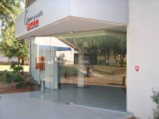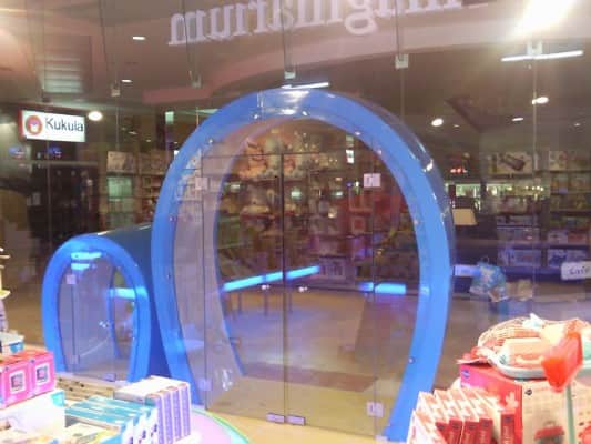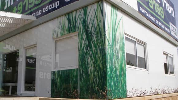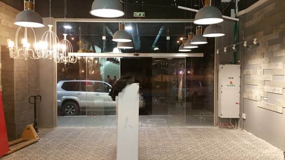 ויטרינת זכוכית מקופפת בשילוב דלתות